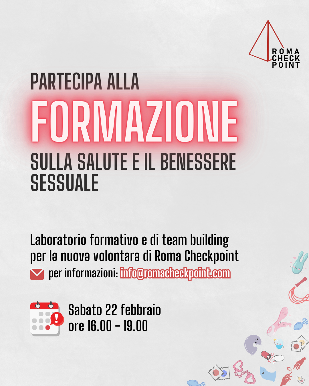 🚨Torna la Formazione di Roma Checkpoint su Salute e Benessere Sessuale: iscrivi compilando il modulo cliccando su questo link.