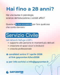📩 Per la candidatura, compila il form entro il 1° aprile 2026: gaycenter.it/scv2026